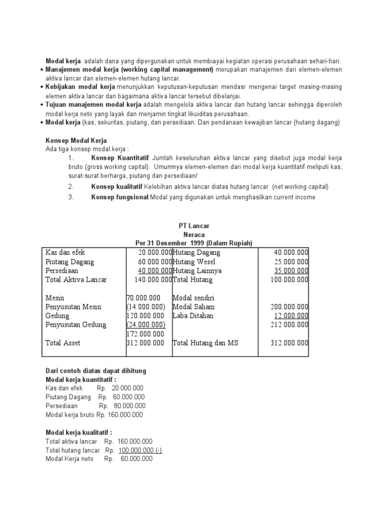 Adapun penjelasan mengenai ketiga konsep pengertian modal di atas adalah sebagai berikut. Modal kerja bukan semua aktiva lancar tetapi telah. Di samping itu pengkaji akan meminta pendapat responden mengenai temu bual.